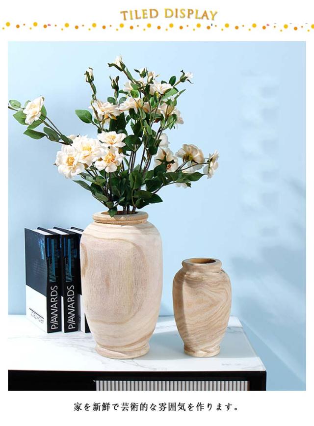 木製 フラワーベース 花瓶 花器 ウッド 造花 シンプル 北欧 大きい 円柱 丸 天然木 母の日 ギフト おしゃれ かわいい ナチュラル プレゼント インテリア 雑貨 玄関 ブラック ホワイト