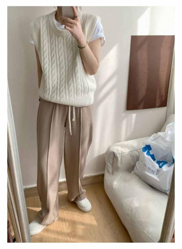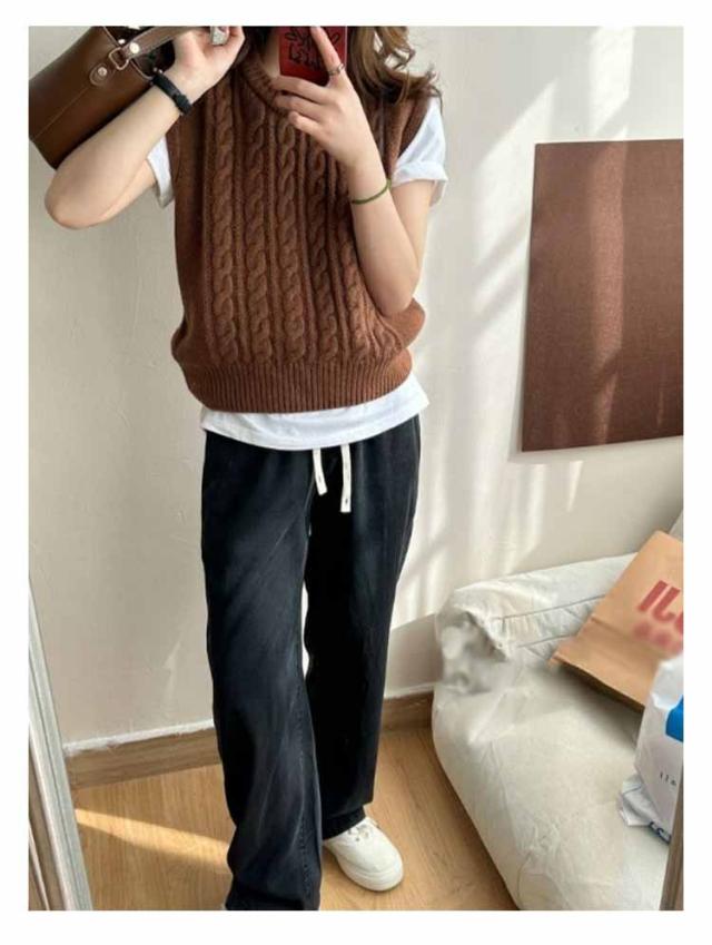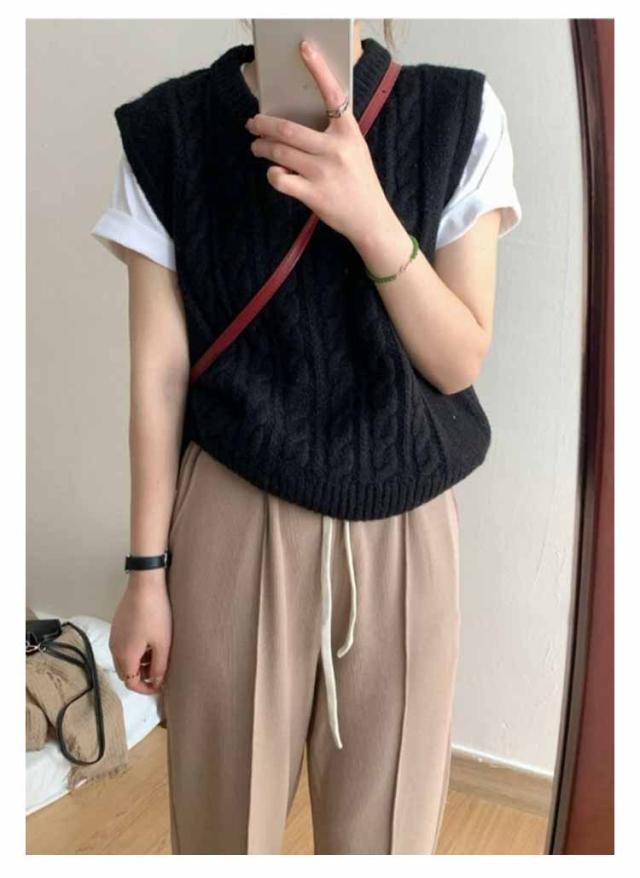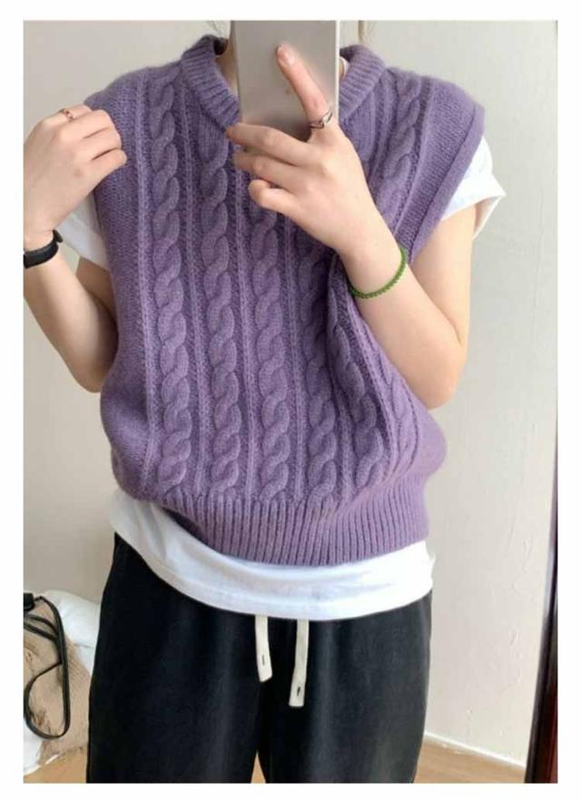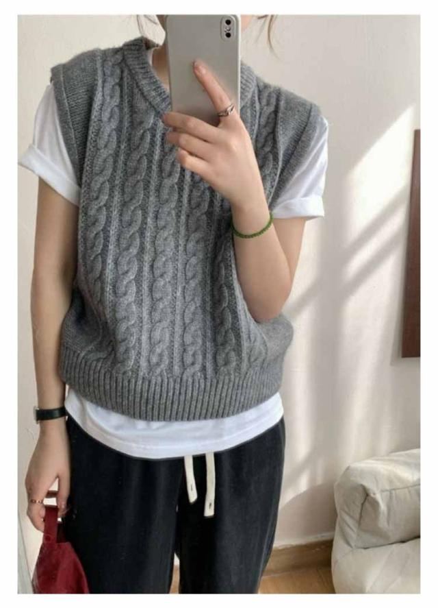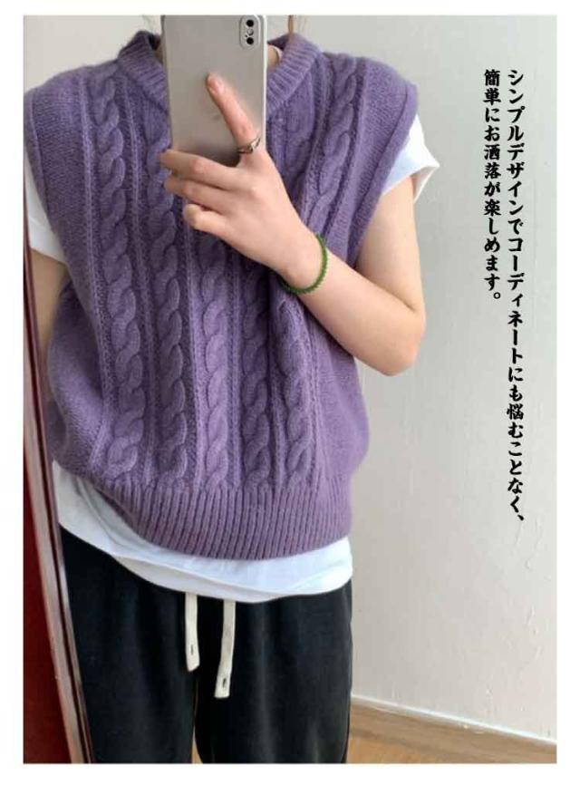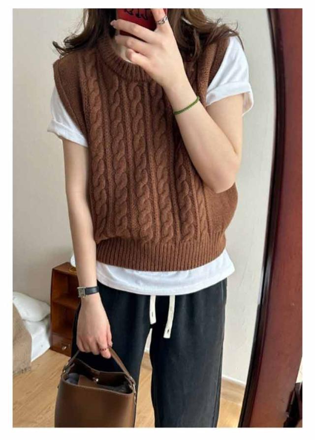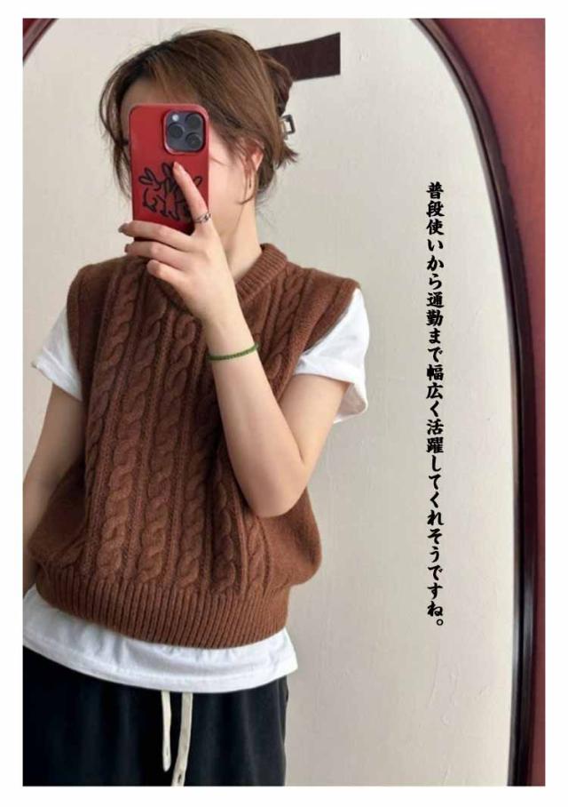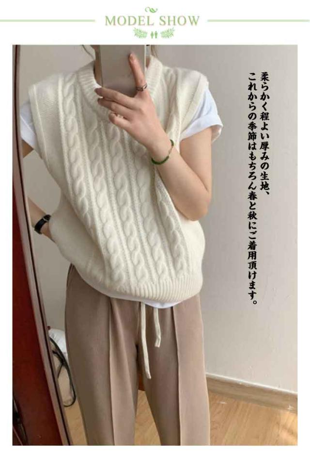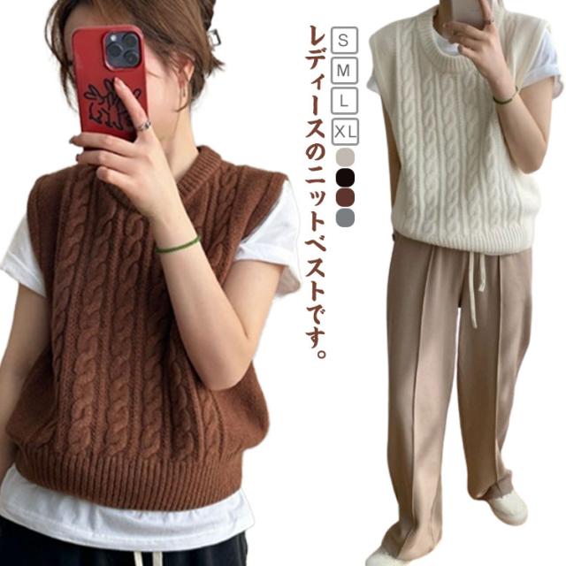 ベスト レディース プルオーバー ケーブル編み ノースリーブ クールネック 着痩せ 可愛い おしゃれ トップス 春秋 無地 カジュアル ニットベスト シンプル 重ね着 レイヤード お出かけ 普段着 ホワイト グレー ブラック ブラウン 送料無料