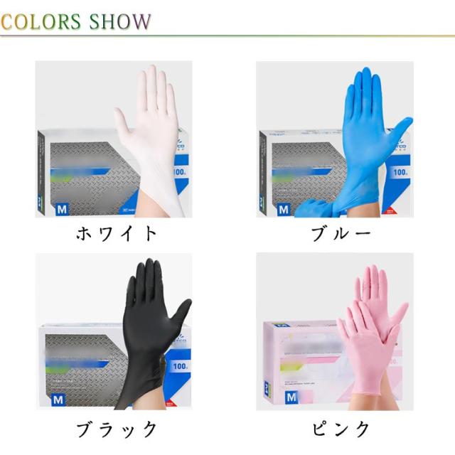 ニトリル手袋 100枚 ニトリルグローブ 青 白 黒 ピンク パウダーフリー 使い捨て 医療 病院 作業用 大掃除 家庭用 業務用 調理用 伸縮性 粉なし S M L 薄手 左右兼用 スマホ対応 滑り止め 送料無料