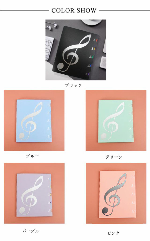 | 学校の吹奏楽部や趣味のサークルなどで大活躍の楽譜ファイルです。 楽譜をポケットに入れるのではなく横側で挟むタイプのファイルなので、楽譜を取り出すことなく書き込めます。授業や練習でもすぐにメモ出来てとても便利です! カバーが頑丈な作りなのでバッグに入れて毎日持ち運んでも中の楽譜を傷めることがありません。 表紙も音楽を意識したデザインになっていますので部活動へのモチベーションも向上します。 | |
