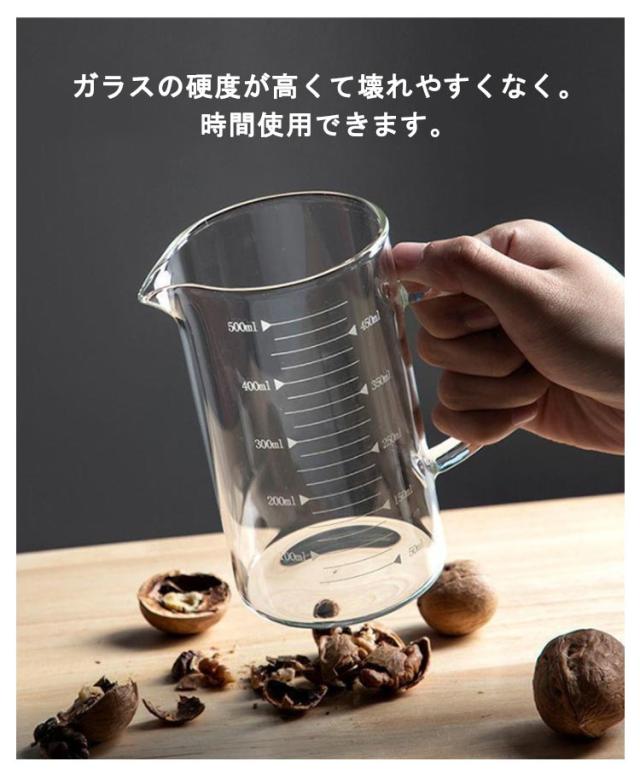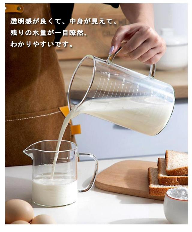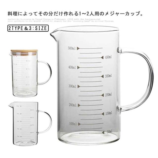 耐熱ガラス 電子レンジ対応 メジャーカップ 目盛り付き お酒グラス 350ml/500ml/1000ml 計量カップ フタ付き キッチン用品 冷凍庫 耐冷 計量カップ 水入れ ミルク 食洗機対応 コーヒー入れ 家庭用