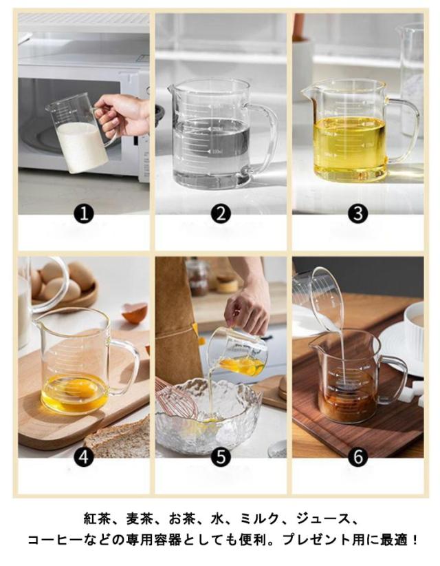 | 料理によってその分だけ作れる1〜2人用のメジャーカップ。 V型注ぎ口の設計は注ぎやすく液だれしにくく、料理の時にもとっても便利♪ 大きく計量しやすい目盛り付き!これを使って簡単計量! ガラスの硬度が高くて壊れやすくなく。時間使用できます。 -30℃〜150℃までの温度差に耐えられて、冷たい飲み物はもちろん、熱い飲み物もOK。 透明感が良くて、中身が見えて、残りの水量が一目瞭然、わかりやすいです。 紅茶、麦茶、お茶、水、ミルク、ジュース、コーヒーなどの専用容器としても便利。プレゼント用に最適! | |