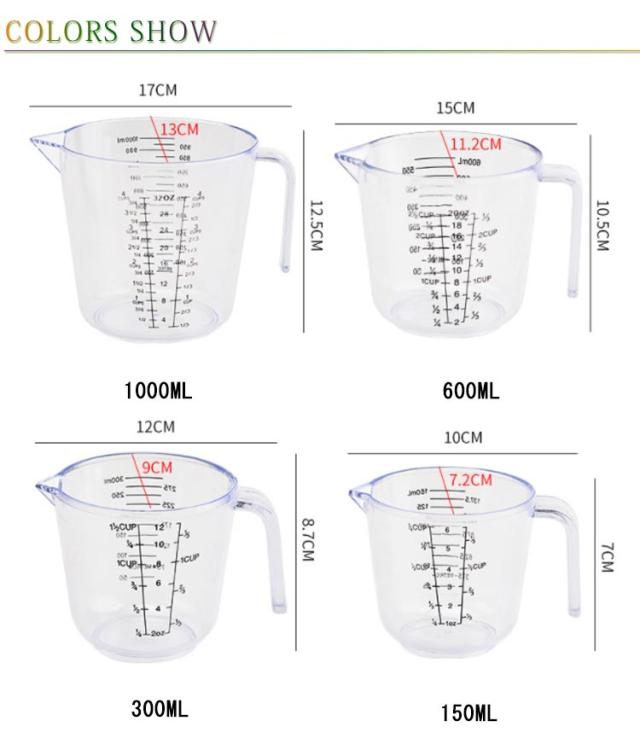 150ml/300ml/600mL/1000ml 目盛りが見やすい はかり 目盛りが見やすい 計量カップ メジャーカップ お菓子作り お洒落 料理道具 プラスチック 耐熱 調理器具 キッチン用品 家庭用 業務用