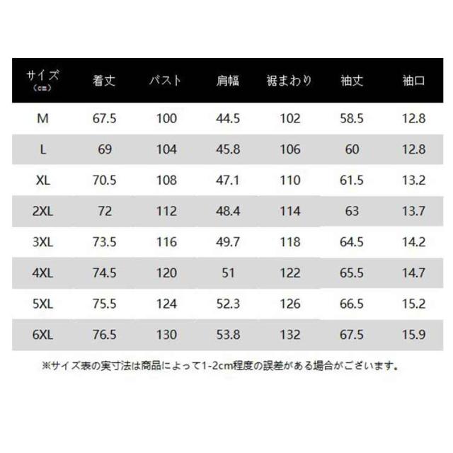 | サイズ | M L XL 2XL 3XL 4XL 5XL 6XL |