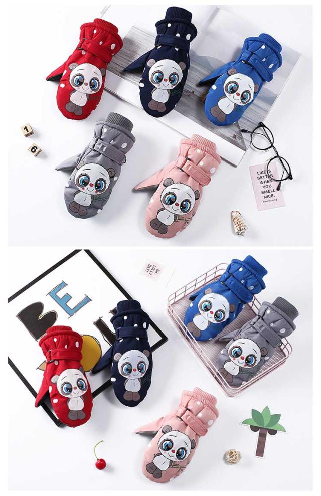 防水 スノーグローブ スキーグローブ キッズ パンダデザイン キッズ ミトンスノーグローブ ミトン キッズ 防寒 撥水 男の子 女の子
