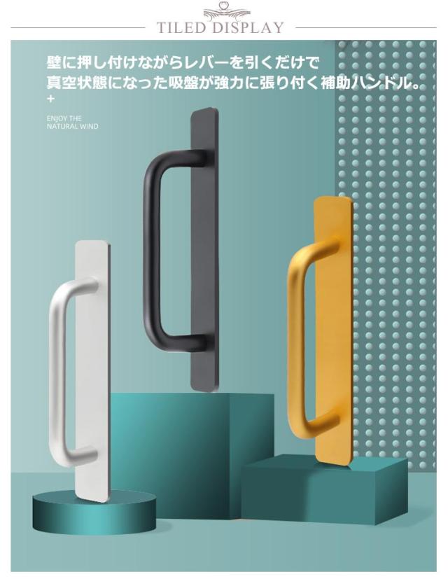 | 2個セット 強力吸盤式 簡単取付 壁に押し付けながらレバーを引くだけで真空状態になった吸盤が強力に張り付く補助ハンドル 強力吸盤式でしっかり固定して簡単に壁から引き離せる。 上部レバーを開いてスポッと取り外し可能です。 立ち座りが多いお風呂場でも安全につかまる事ができます。 シンプルでモダンなデザインでどんな場所でも違和感なくマッチします | |