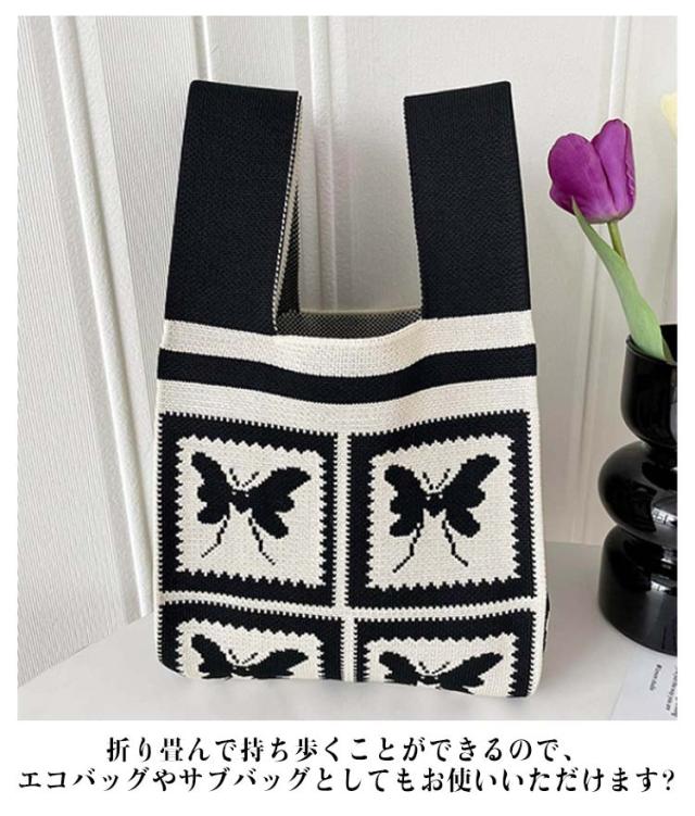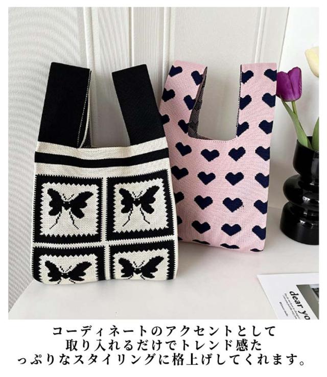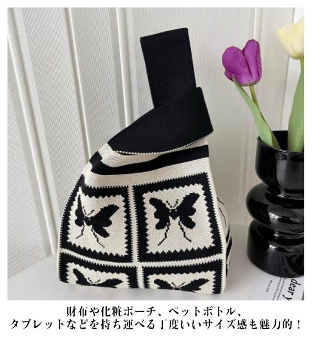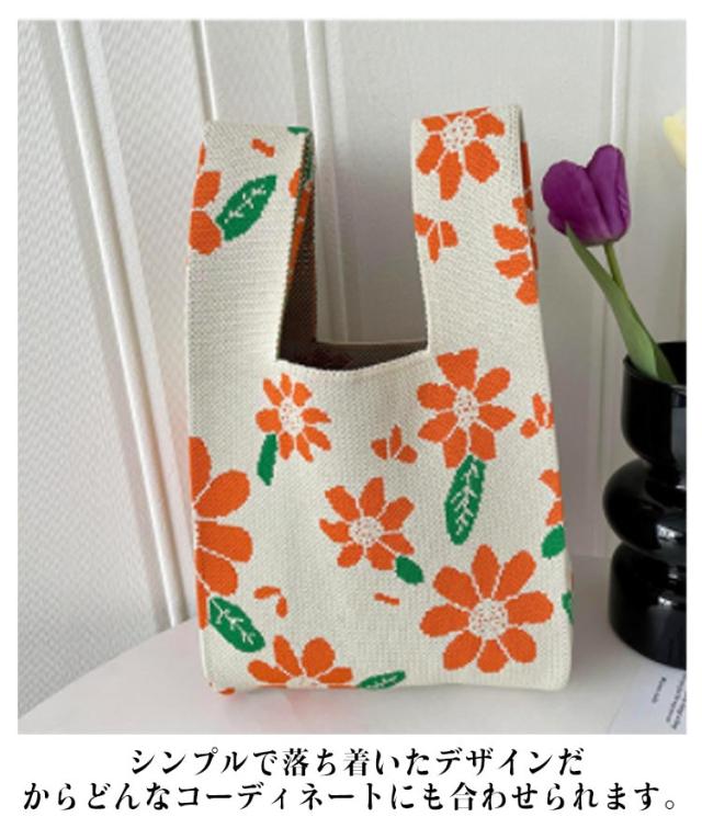 バッグ マルシェバッグ ニットバッグ ニット クロシェ編み ニット 縦型 ミニバッグ 韓国 ハンドバッグ レディース かぎ針 小さめ エコバック トートバッグ 雑貨 おしゃれ トートバッグ