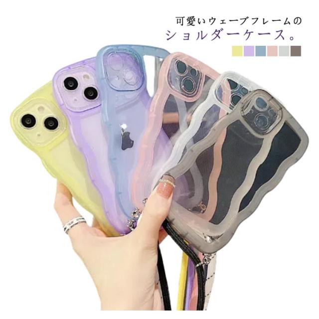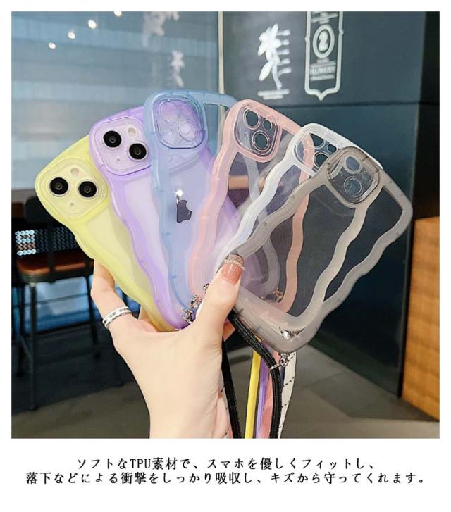 15 iPhone15 うねうね ストラップ付き Pro 15Pro iPhone ケース Plus スマホショルダー ケース iPhoneケース クリア iPhone15 なみなみ 15 落下防止 肩掛け iPhone 15 ケース Max クリア ケース うねうね なみなみ ウェーブケース オシャレ