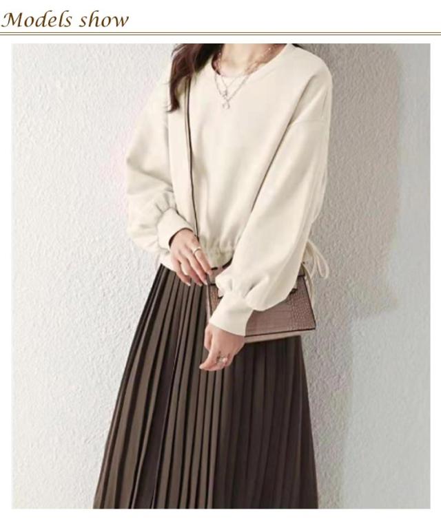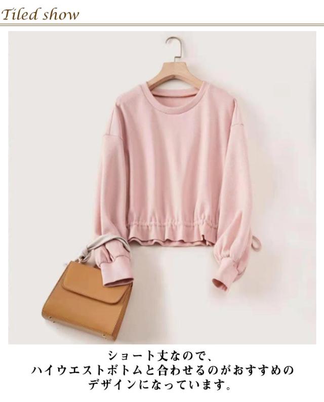 ブライトスウェット 長袖 無地 フリルショート丈トレーナー ボリュームスリー プルオーバー レイヤード トップス プルオーバー ペプラム 40代 20代 30代 スエット 50代 長袖 着回し フリルショート丈トレーナー シンプル 薄手 大人 きれいめ