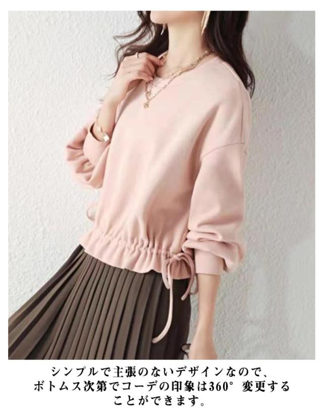 | クシュっと絞られた裾のギャザーデザインがワンポイントのトレーナー。 裾のリボン結びをする位置で絞り具合も調節する事が可能、気になる腰周りをカバーしてくれます。 シンプルで主張のないデザインなので、ボトムス次第でコーデの印象は360°変更することができます。 身幅はゆったりルーズなワイドシルエット×短丈でスタイルアップ効果抜群。 ショート丈なので、ハイウエストボトムと合わせるのがおすすめのデザインになっています。 | |