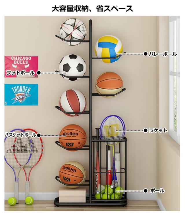 玄関 収納 ラック カゴ ボール ボールスタンド 5段 ボールかご ボールスタンドボール整理 ボール バスケットボールラック 組み立て便利 ボールスタンドタワー ボールラック ボールカゴ ボール収納 サッカー 野球 バスケ テニス
