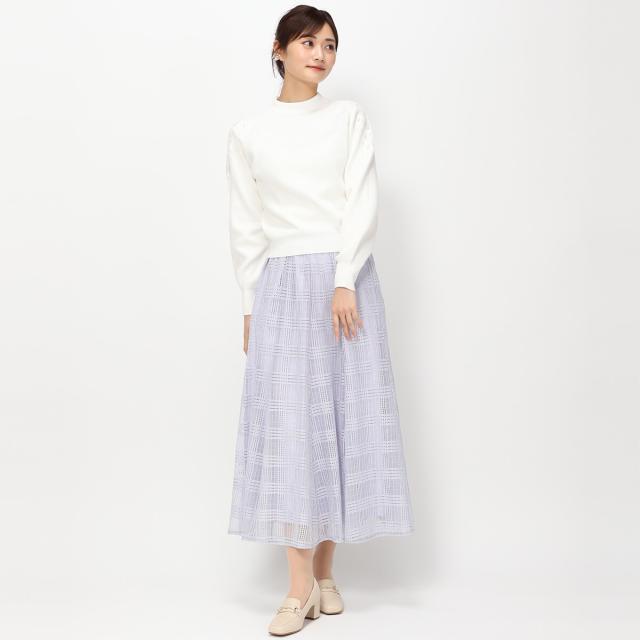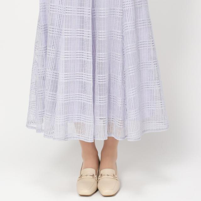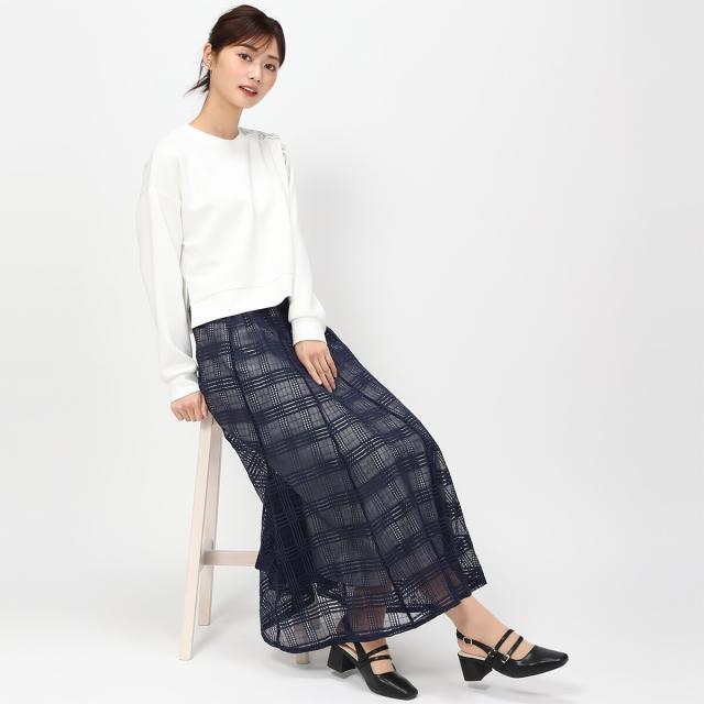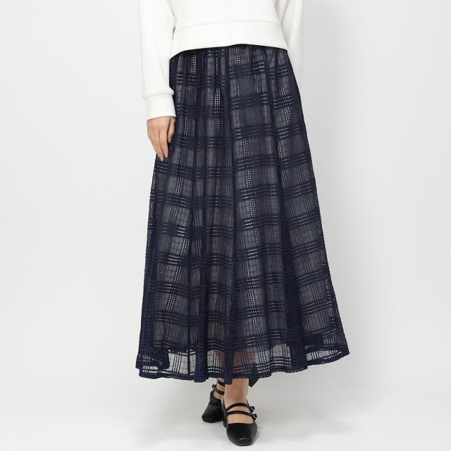 透け感のあるチェックレースが繊細な女性らしさを演出するスカート。
