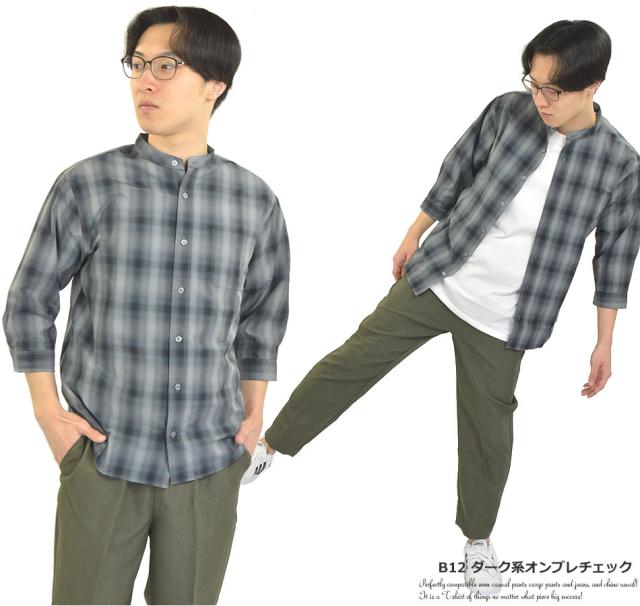 シャツ メンズ 七分袖 ボタンダウンシャツ バンドカラーシャツ ノーカラーシャツ 襟なしシャツ 七分袖シャツ ストライプシャツ チェックシャツ ブロードシャツ ボタンダウン バンドカラー ノーカラー 襟なし ストライプ チェック ビジネスシャツ 白 黒 青 春 夏 秋 新作