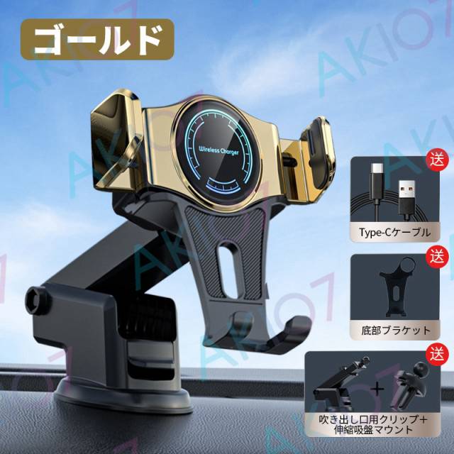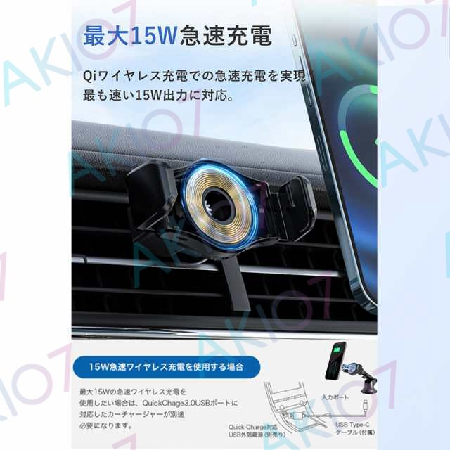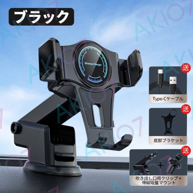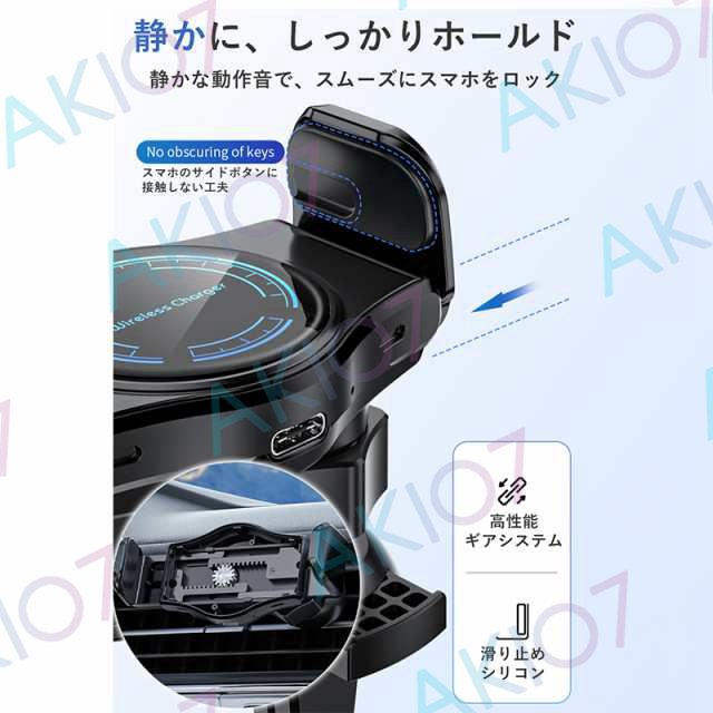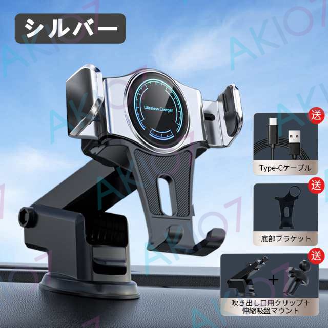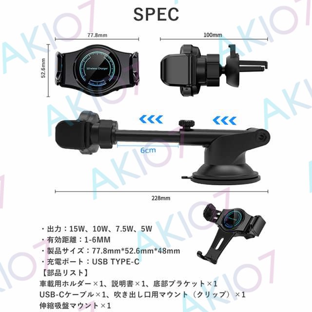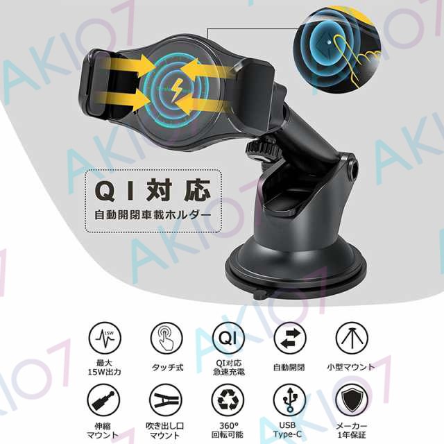 【自動開閉&最大15W出力】車載ホルダー QI対応 ワイヤレス充電 スマホスタンド 360度回転 縦置き 横置き ダッシュボード 伸縮アーム 強力 スマホスタンド 車用