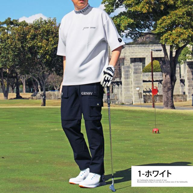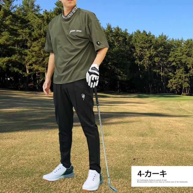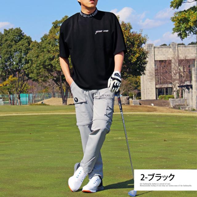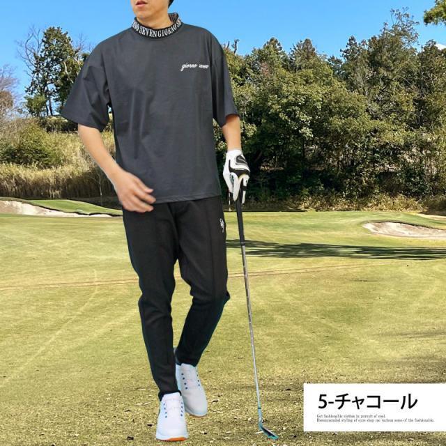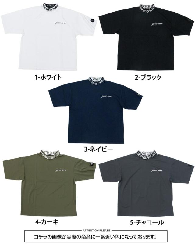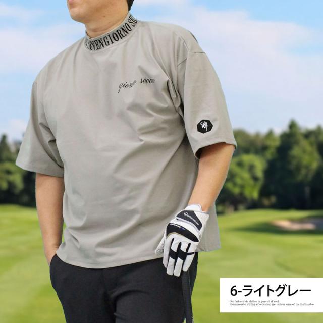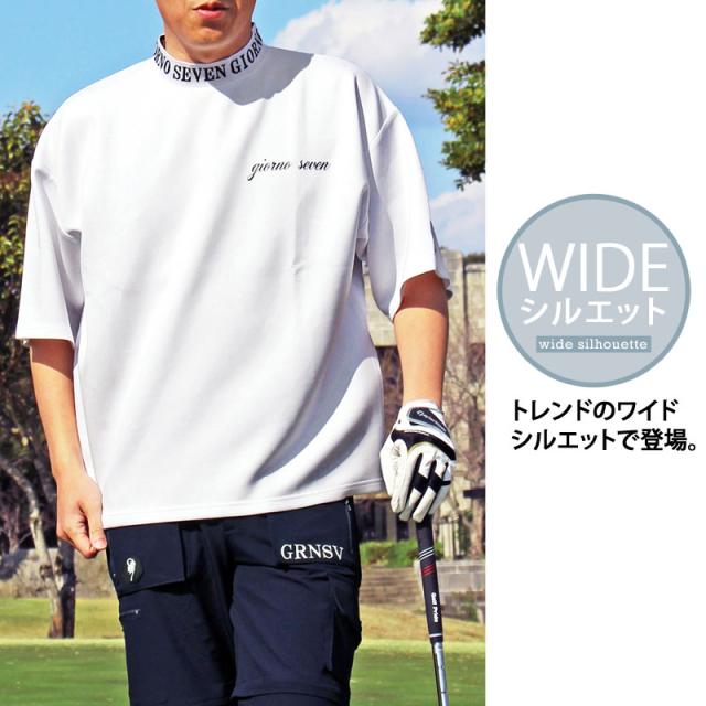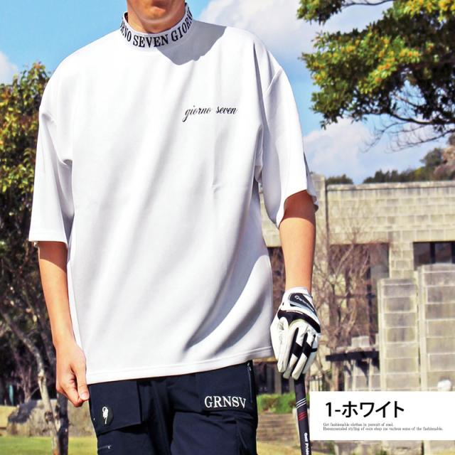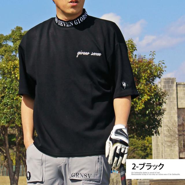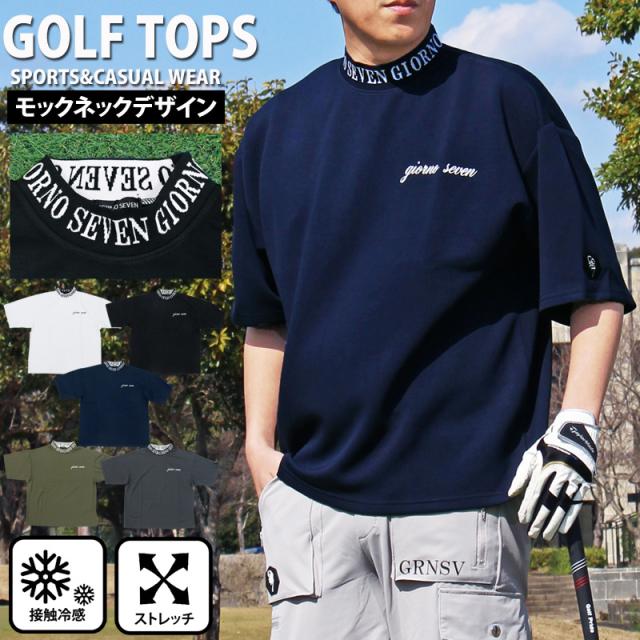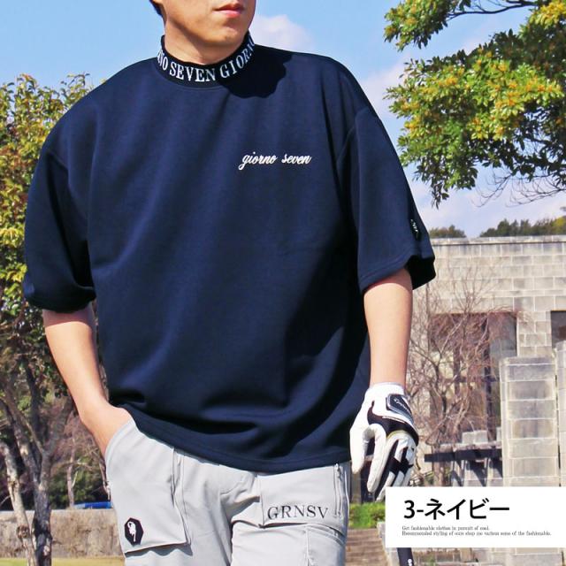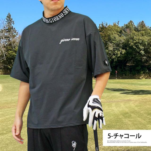 ゴルフウェア モックネックシャツ BOXシルエット ゆったり メンズ GIORNO SEVEN ジョルノセブン ワイドシルエット ハイネック ゴルフ 接触冷感 ストレッチ 半袖 ロゴ ポロシャツ 春夏 送料無料 ネコポス