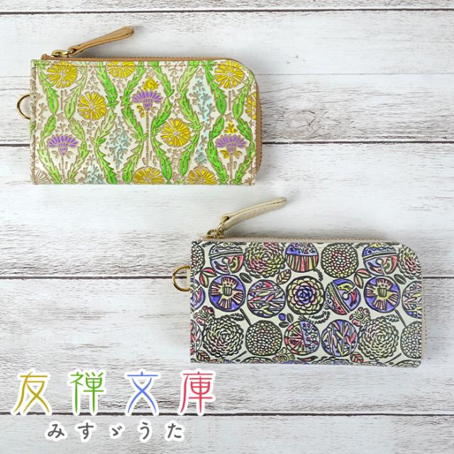 キーケース 鍵 キーホルダー スマートキー L字ファスナー 見開き 革小物 レディース 本革 牛革 レザー 友禅文庫 みすゞうた おしゃれ 上品 かわいい ボタニカル 花柄 たんぽぽ 大人 女性 婦人 プレゼント