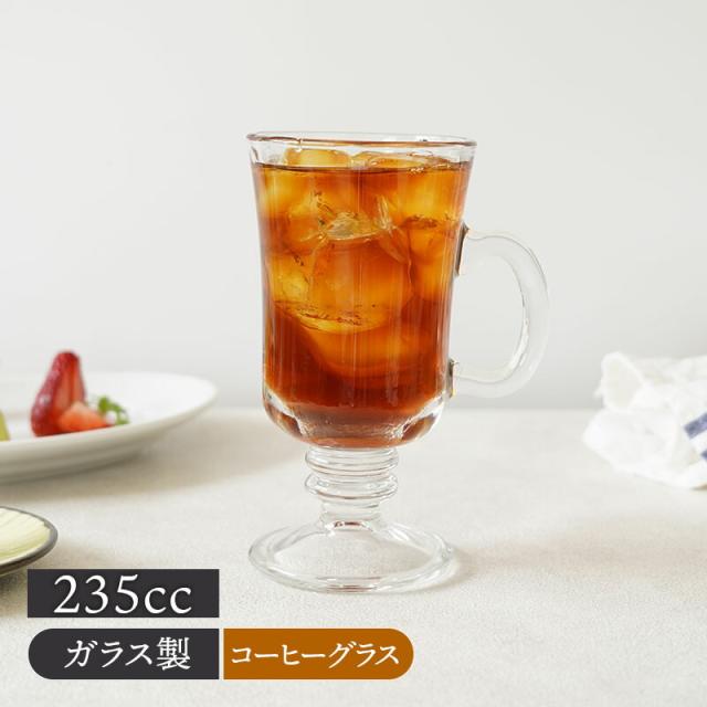 アイスコーヒー 持ち手付グラス 235cc ガラス製 グラス コップ カップ ガラス食器 おしゃれ 洋食器 食器 アイスティー カフェ風 カフェ食器 パフェ 来客食器