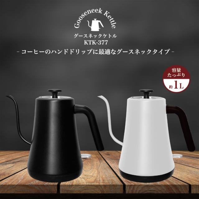ケトル キッチン家電 ポット グースネックケトル KTK-377 全2色 グースネック 1L 空焚き防止機能 電気ケトル ドリップケトル コーヒードリップ ハンドドリップ おしゃれ 新生活