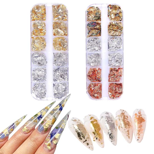ネイル 金箔 銀箔 フレーク 2ケース入り ジェルネイル レジンパーツ ネイルホイル ホログラム ゴールド シルバー ローズゴールド 極薄 キ
