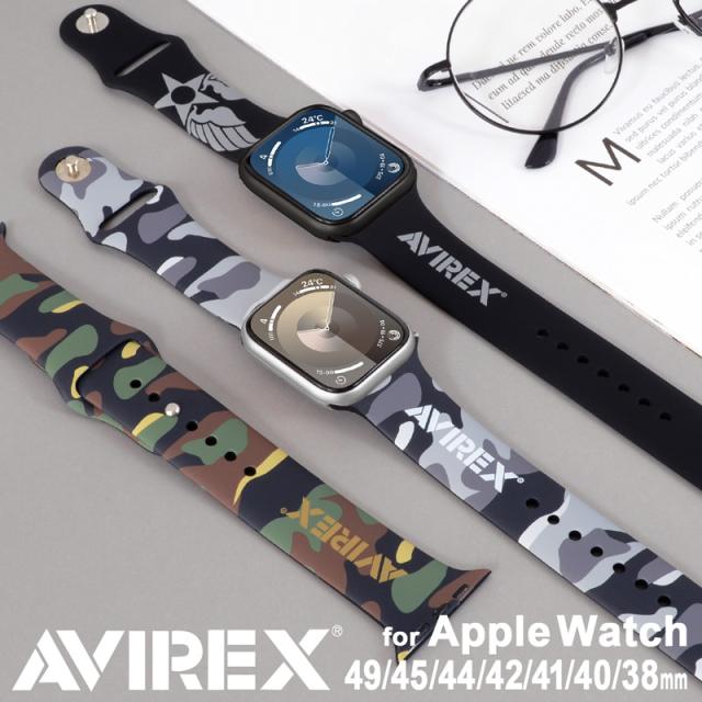 Apple Watch Band アップルウォッチ バンド AVIREX アヴィレックス シリコン バンド 49 45 44 42mm / 41 40 38mm 落下防止 おしゃれ かわいい かっこいい avirex アビレックス