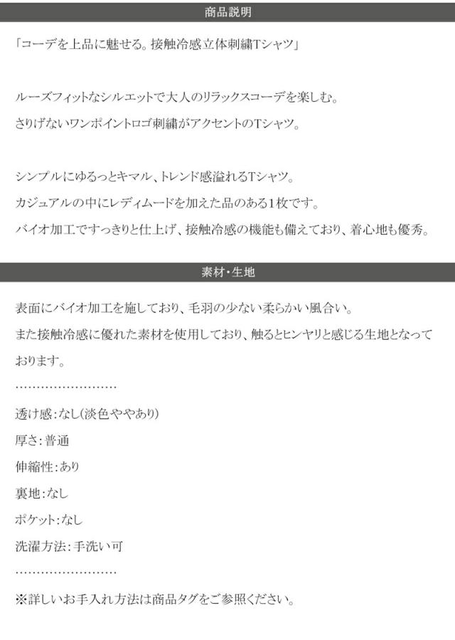 ★コーデを上品に魅せる。接触冷感立体刺繍Tシャツ★