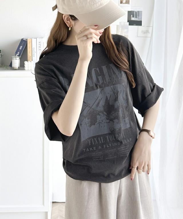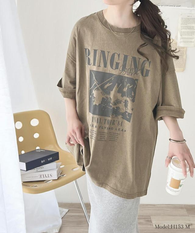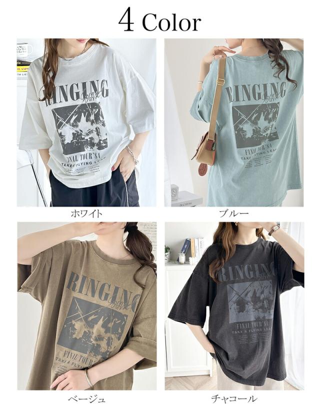 クラシカルエルフ 冬新作 トップス Tシャツ レディース 綿100% 前後 2way レトロ ヴィンテージ 加工 アシッド ウォッシュ Tee メンズライク ゆったり ビッグシルエット 体型カバー 大きいサイズ 2024ss ce1260145