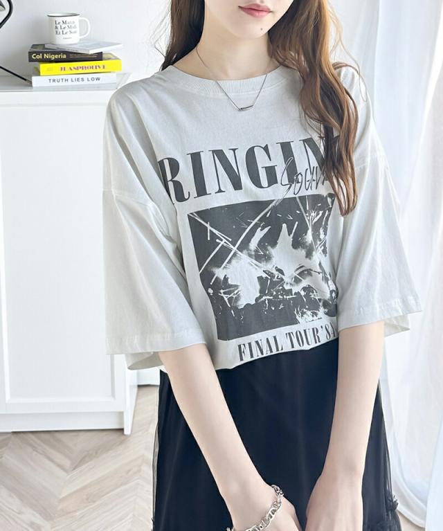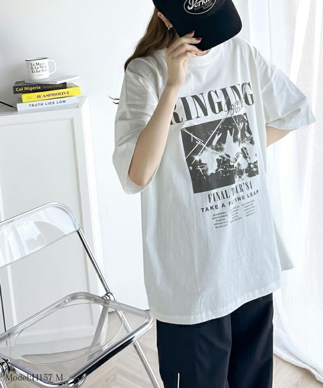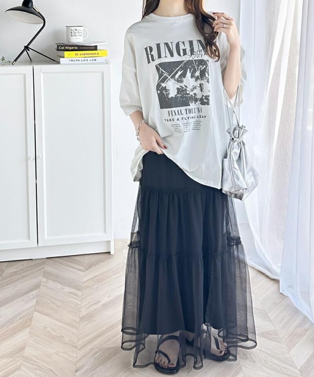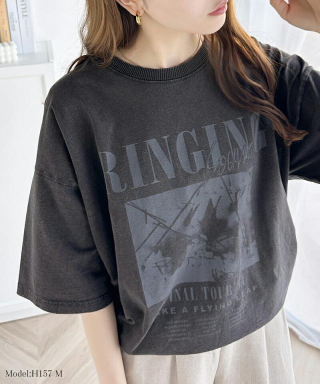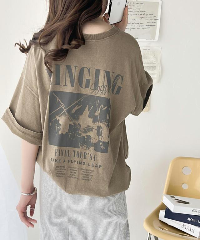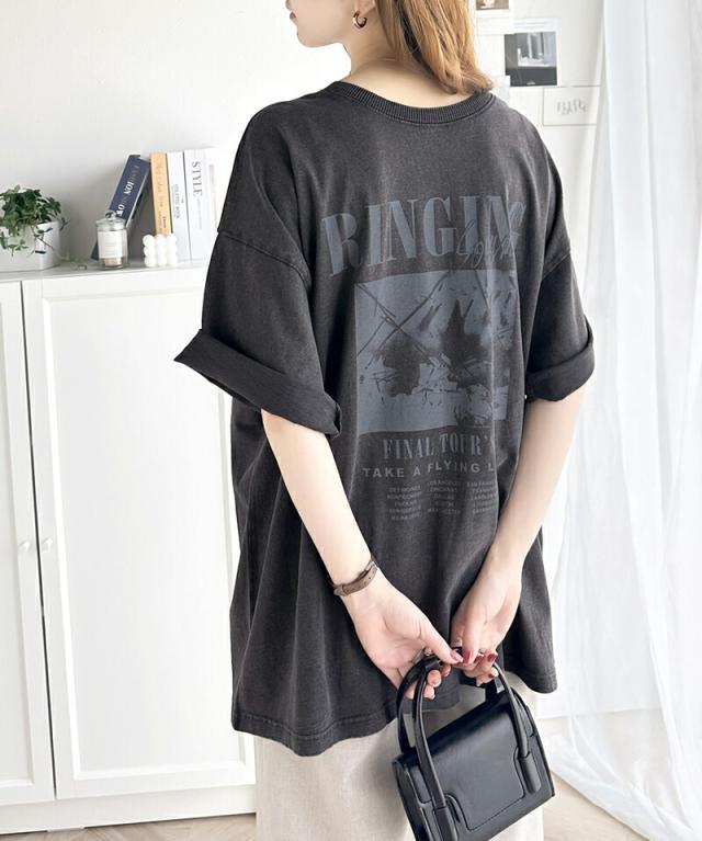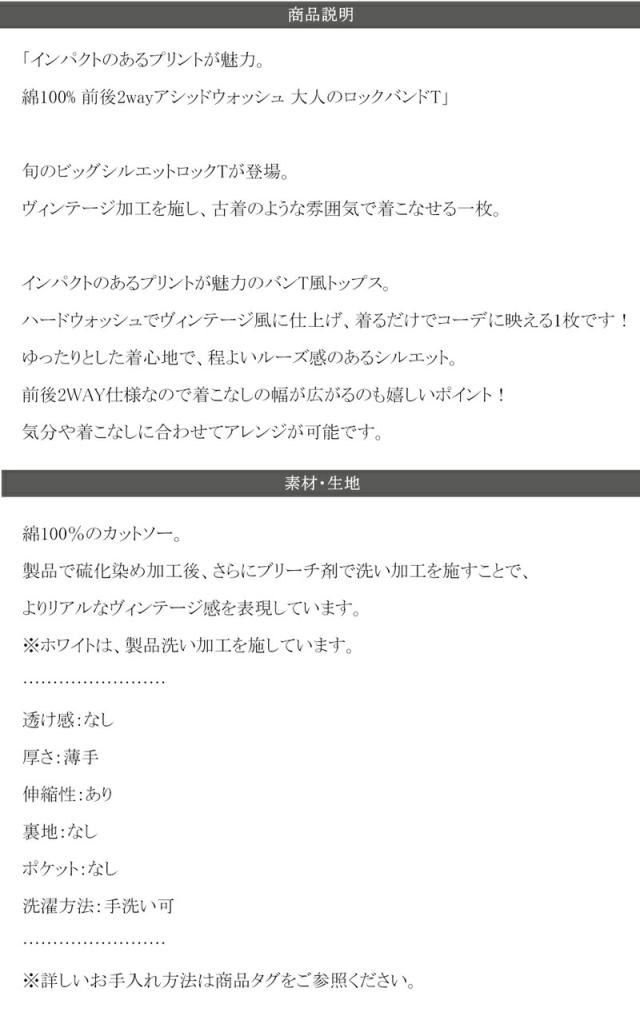★インパクトのあるプリントが魅力。綿100% 前後2wayアシッドウォッシュ 大人のロックバンドT★