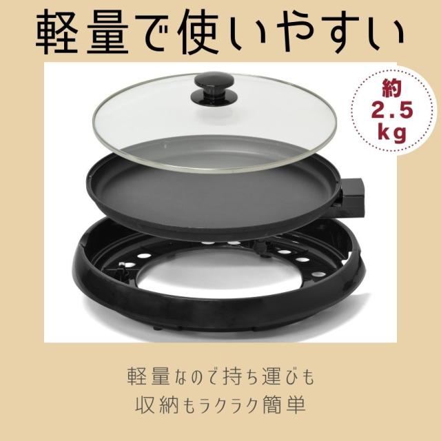 ホットプレート 大型 丸型 電気 強化ガラスふた付き 卓上調理 円形 円型 ファミリー ファミリーサイズ 調理 料理 焼き肉 焼肉 餃子 焼きそば お好み焼き ホットプレート 家族 パーティー 昼食 夕食 リビング 団らん フッ素コート加工