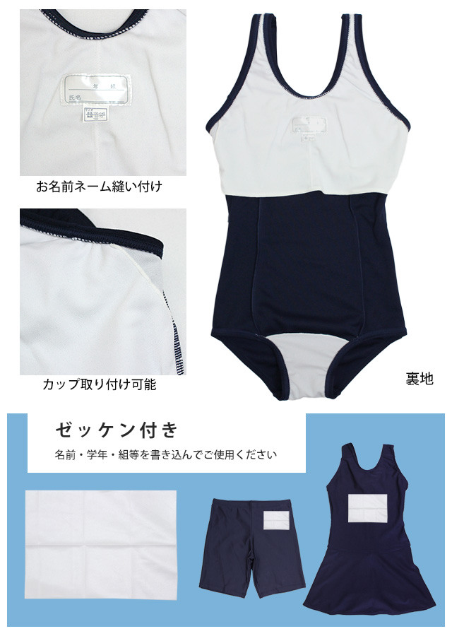 | 商品説明 | サイズ展開:110cm 120cm 130cm 140cm 150cm 160cm 170cm 対象:女の子 女児 女子 子供 キッズ ジュニア タイプ:ワンピース(一体型) 適用:プール授業 学校水着 ネイビー ●抗菌・消臭効果 ●ゼッケンシート付き ●ネームタグ付き ●カップ取り付け可能(差し込みタイプ) ※110cm〜130cmはカップ取り入れ口無し |