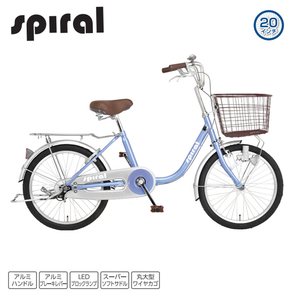 自転車 20インチ ミニベロ 小径車 LEDブロックランプ 前カゴ付き スパイラル20 マスターブルー 美和商事 SP200CPLD-MB