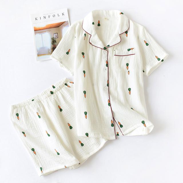 綿 二重ガーゼ パジャマ 半袖 前開き ガーゼパジャマ 短パン レディース 春 夏 上下セット 大人用 ルームウェア ナイトウエア 部屋着 寝間着