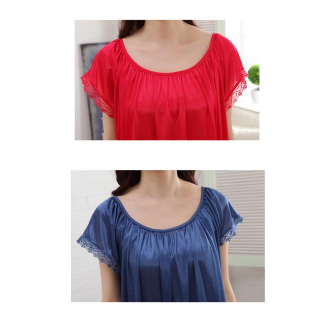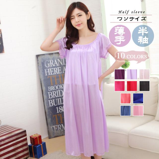 ネグリジェ レディース 部屋着 無地 半袖 ロング丈 シルク風 ルームウェア ひんやり カジュアル 薄手 速乾 大きいサイズ オシャレ