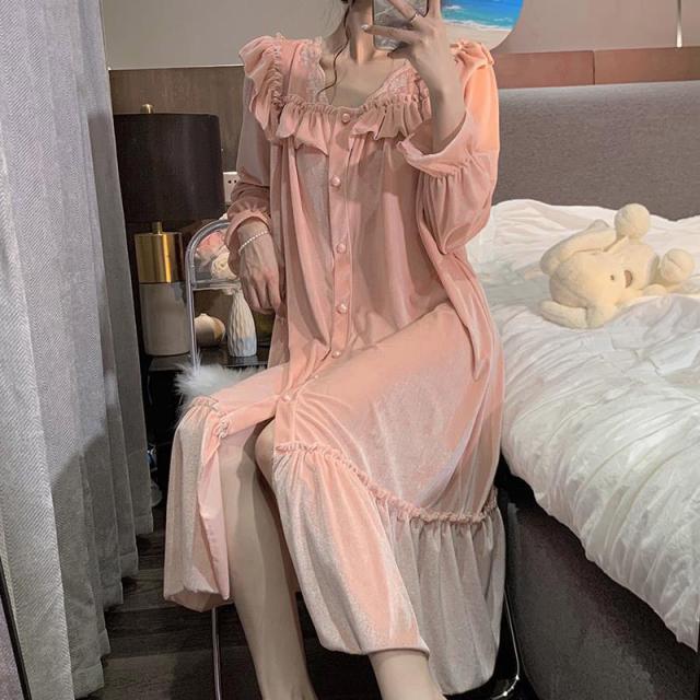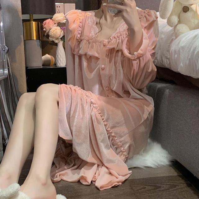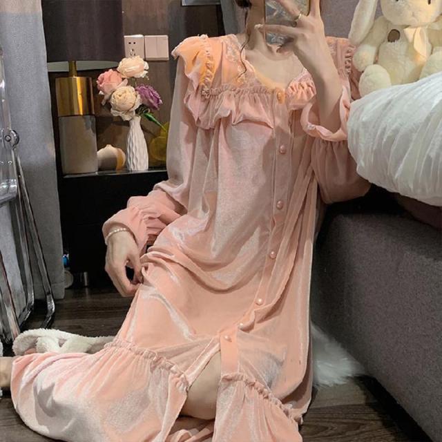 ネグリジェ 春夏秋 長袖ネグリジェ 姫風ワンピース ロング丈 フレアVネックネグリジェ ナイトロープ ルームウェア レションパジャマ レディース 大人