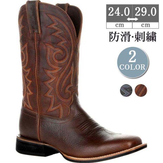 ブーツ メンズ 刺繍 レザーブーツ ロングブーツ 光沢感 高級感 メンズ靴 ウエスタンブーツブーツ 厚底 滑り防止 カジュアル 履きやすい