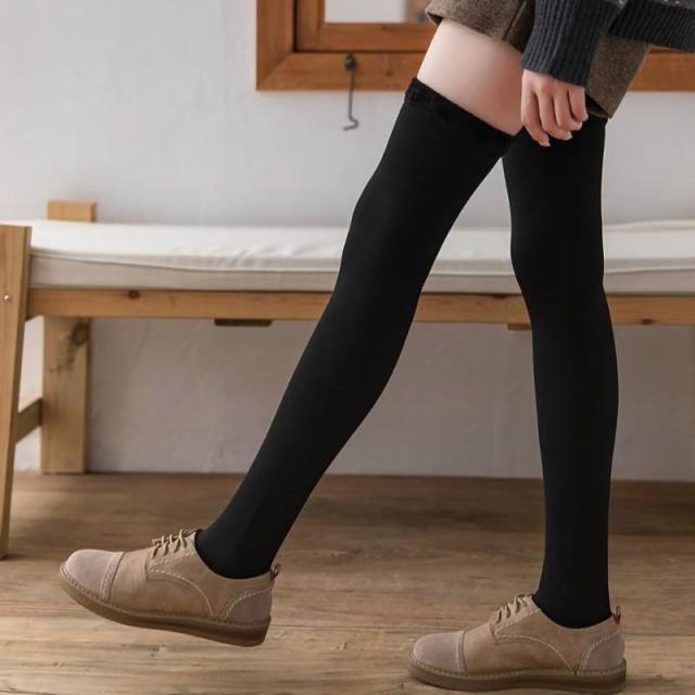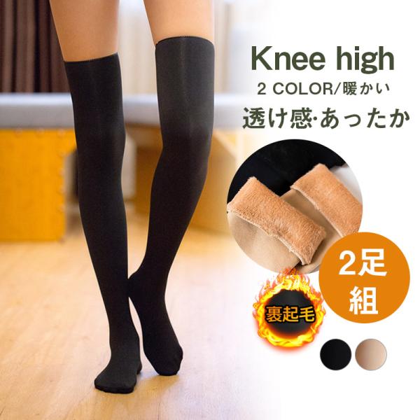 2足組 裏起毛 ソックス ハイソックス ニーハイソックス フェイクタイツ 透け感 靴下 厚手 もこもこ暖かい ルームソックス 温かい ロングソックス