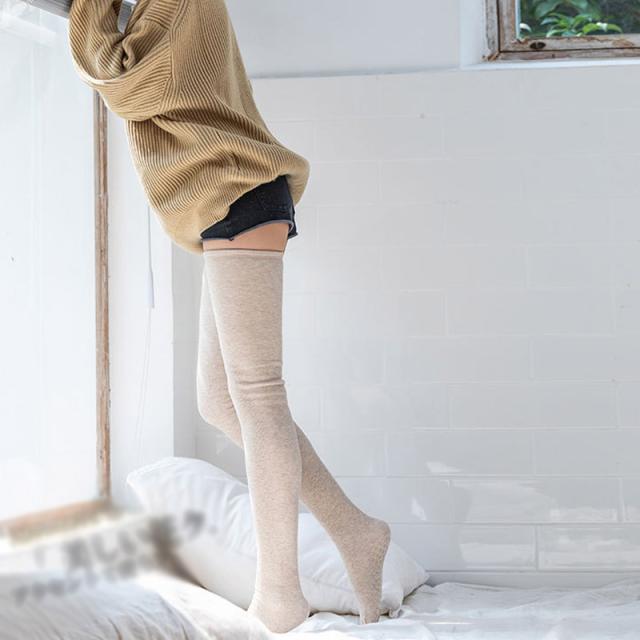 上質な無地のリブニーハイソックスです。