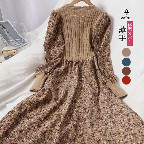 ワンピース レースワンピース 総レース 花柄ワンピース Aライン 透かしレース 七分袖 ゆったり 着痩せ 細身 おしゃれ 大人 可愛い きれい