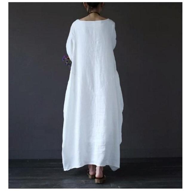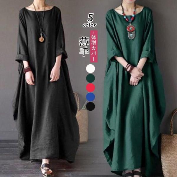 ワンピース ロング丈ワンピース ゆったり 無地 バルーンワンピース ロング 春夏新作 体型カバー カジュアル服 長袖 ラウンド襟 可愛い カワイイ