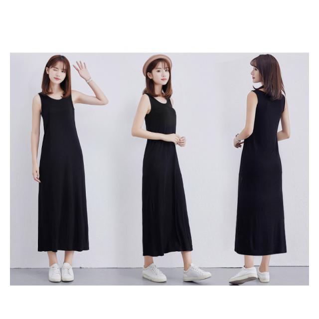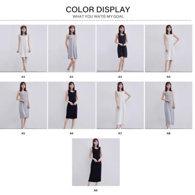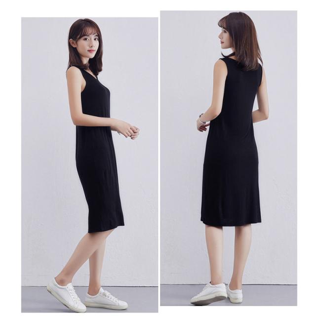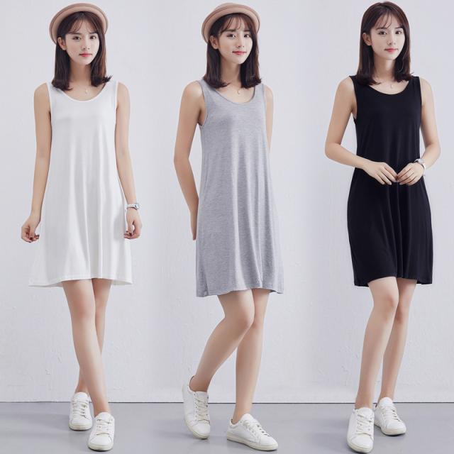 タンクワンピース キャミソール ゆったりUネックノースリーブレディース ルームウェア 丈選択可 ワンピース 柔かい 重ね着 夏春 ミドル丈