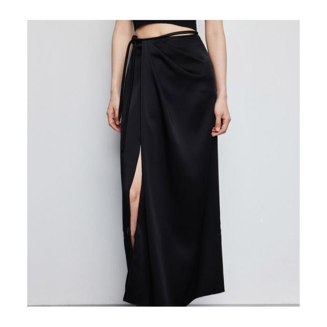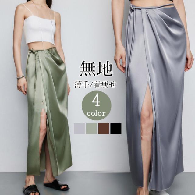 マキシ丈スカート ロング丈 春 夏 巻きスカート フレア レディース ラップスカート トレンド サテン 光沢感 ミモレ丈 カジュアル コーデ