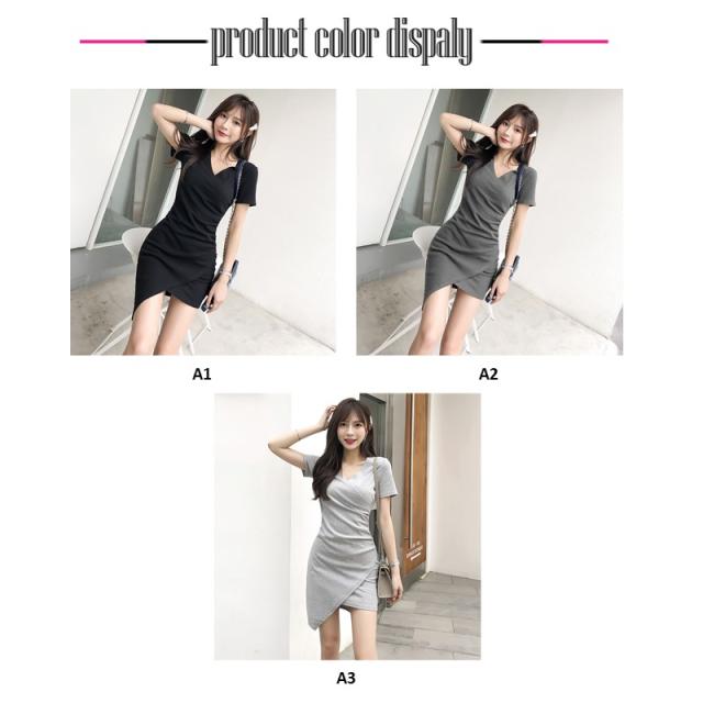ワンピース レディース 夏 ミニワンピース タイト 半袖 無地 Aライン Vネック ミニ丈 夏 フェミニン 着痩せ 細身