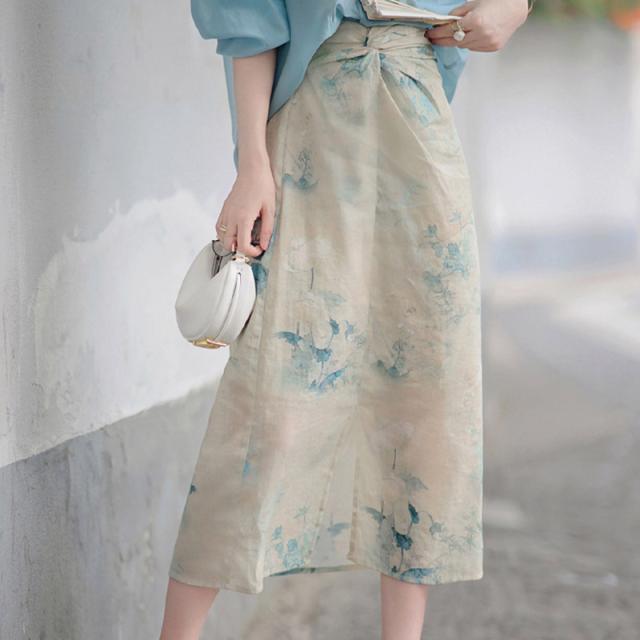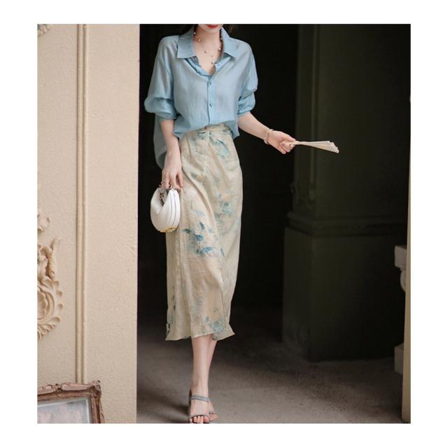 マキシ丈スカート ロング丈 春 夏 巻きスカート フレア レディース ラップスカート トレンド サテン Aライン 花柄 ミモレ丈 カジュアル コーデ