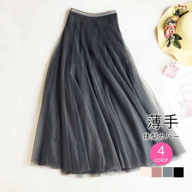 チュールスカート スカート マキシ ロングスカート フレアスカート ウエストゴム マキシスカート ミモレ丈 柔らかい 夏 春 春夏 お花見