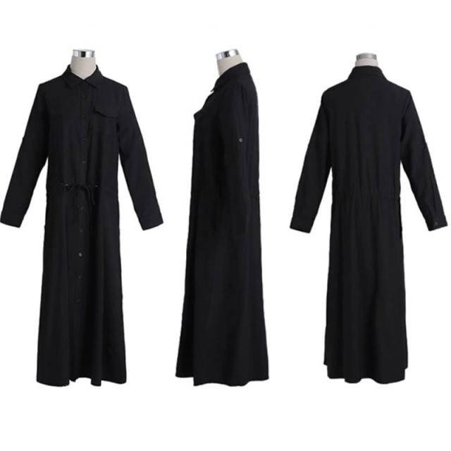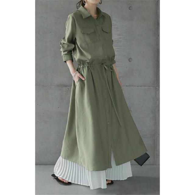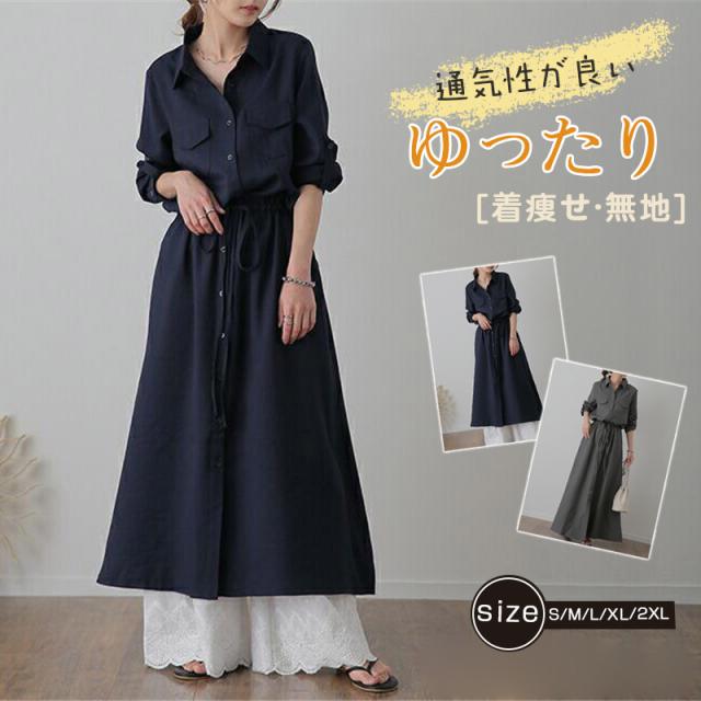ワンピース レディース 長袖 ロングワンピース シャツワンピース マキシワンピース 襟付き シンプル 無地