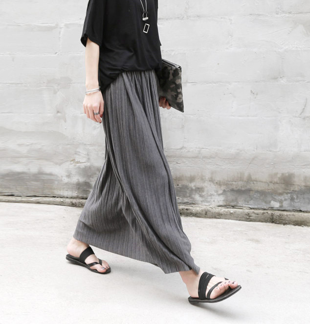 マキシ丈 プリーツ スカート グレー ハイウエスト 美脚 体型カバー ロングスカート 韓国ファッション レディース ゆったり 柔らかい
