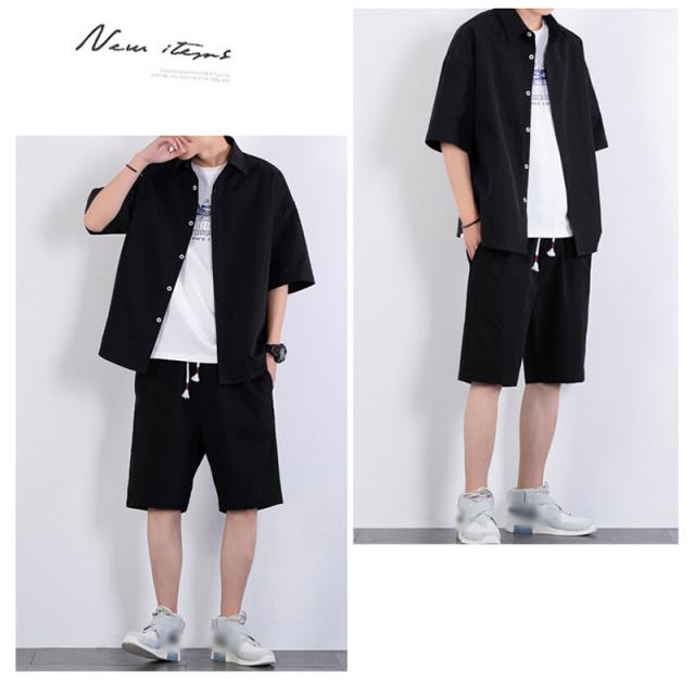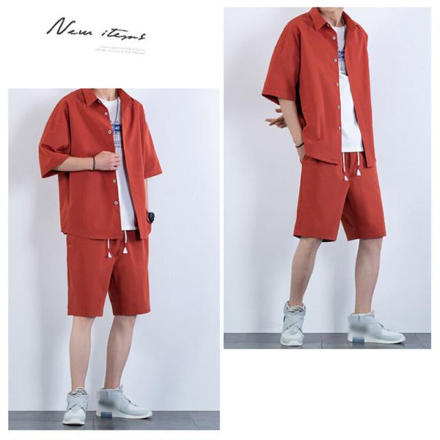 セットアップ メンズ 夏 半袖 上下セット サマー 短パン 薄手 接触冷感 涼しい 旅行 学生 ゆったり シャツ トップス ギフト 部屋着 無地