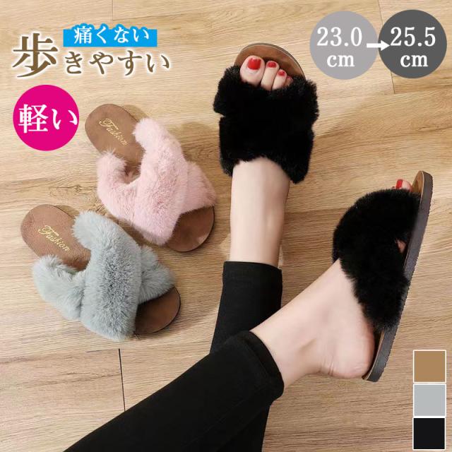 ★限定クーポン★ファーサンダル レディース ぺたんこ プチプラ スリッパ 履きやすい 歩きやすい かわいい おしゃれ 靴 シューズ カジュアル 玄関 フラット