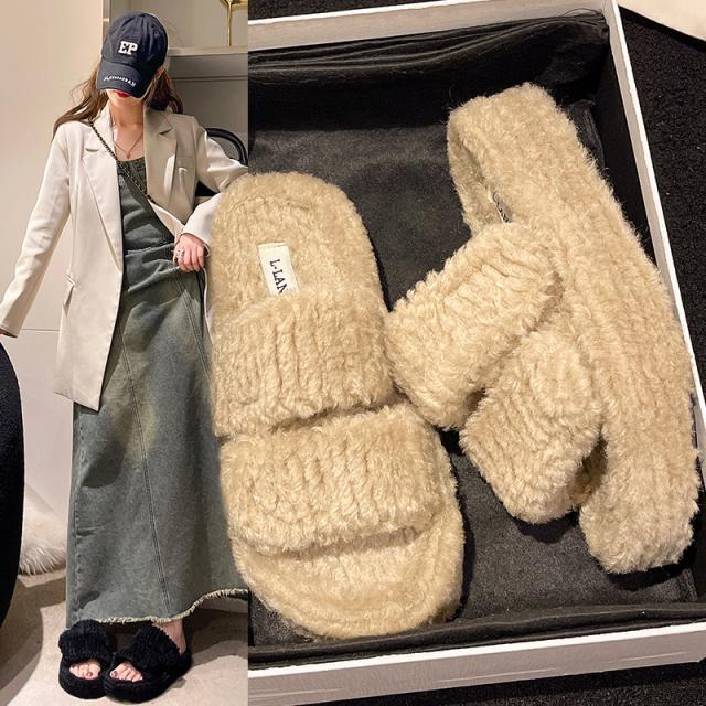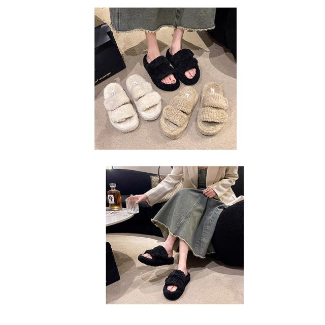 ファーサンダル レディース 厚底 秋コーデ ボリュームファー もこもこ 暖かい フラットソール カップインソール 室内履き オフィス 可愛い