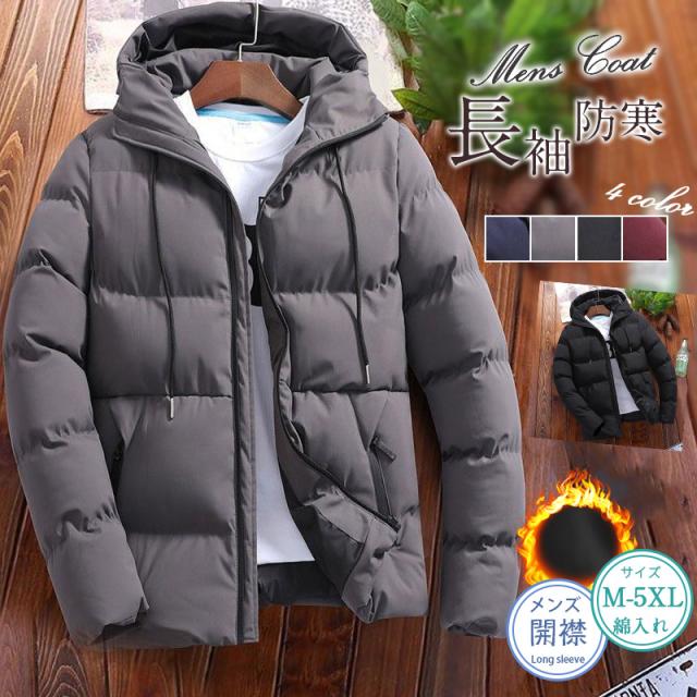 ★限定クーポン★中綿ジャケット メンズ フード付き 防寒ジャケット 中綿コート スリム 綿入れ アウター ジャンパー 防風保温 暖かい ジャケット あたたか 冬服