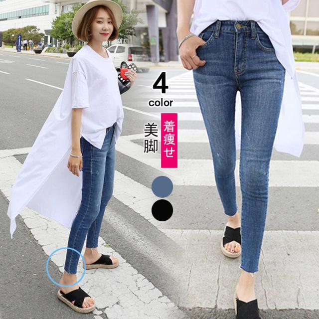 最大15%OFF! スキニー ジーンズ レディース デニム パンツ ストレッチ アンクル丈 9分丈 10分丈 ダメージ クラッシュ